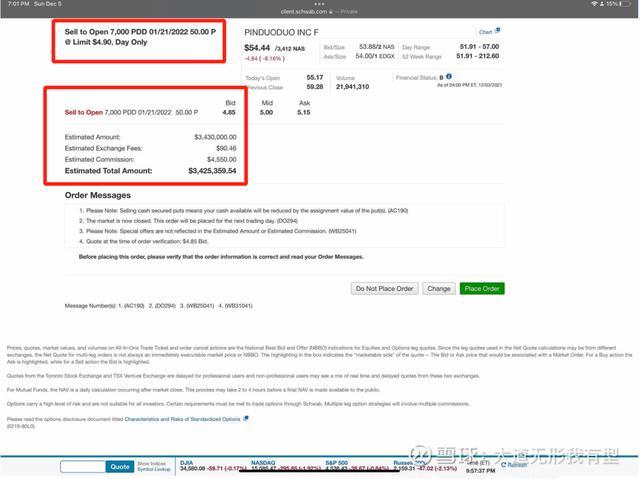 不过,从截图来看,段永平的操作还是比较保守的,通过卖7000张put来看涨拼多多。即别人给他4.9美元,获得一项权力:在2022年1月22日以50美元一股的价格将拼多多卖给他。