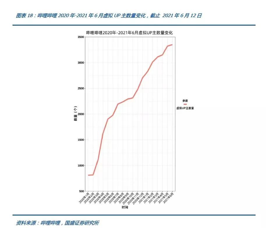 目前虚拟偶像是虚拟人最为成熟的商业化应用,市场规模正在稳步增长。其中,虚拟人以虚拟主播Vtuber形式为主,主要原因在于门槛低、变现相对容易和迅速。2016年虚拟主播“绊爱”在youtube上线,逐步开始广泛流传开来。2020年1月至今年6月,哔哩哔哩上的虚拟主播数量增长了将近7倍,催化因素主要来源于以下两点:疫情影响:线上娱乐市场整体增长,催生了新的观众市场,增加了需求。头部虚拟IP退出:龙头虚拟偶像团体“hololive”退出。头部IP的突然空缺使得粉丝、市场、官方资源等急于寻求新的绑定,给与新的虚拟主播一定的发展机会。