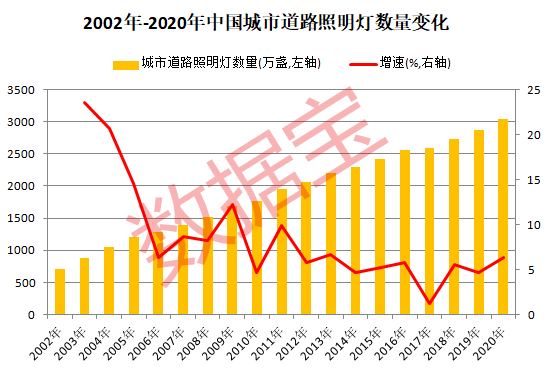 城市照明路灯数量规模庞大。国家统计局数据显示,我国城市道路照明灯数量已由2010年的1774万盏增长到2020年的3049万盏,叠加城市新建道路,由此带来的路灯的新增和更换,每年将达到非常可观的数目。