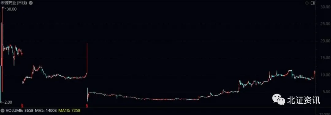 (宏源药业挂牌新三板以来股价走势图)